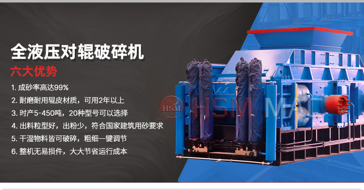河南華盛銘鵝卵石液壓對輥制砂機具有以下幾個顯著的優勢: